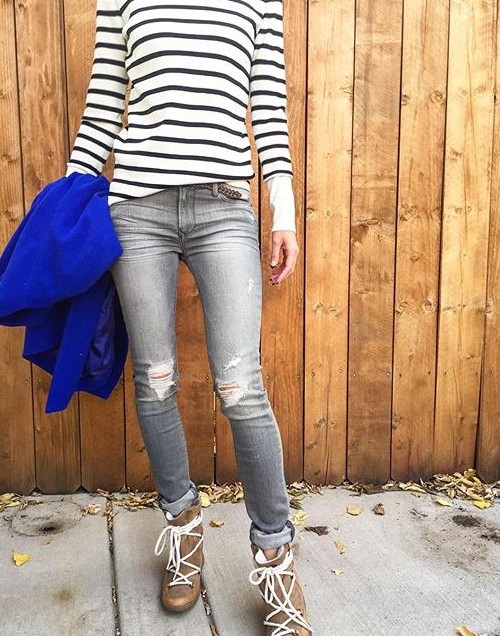Black Orchic Jeans + JCrew Breton style sweater + Helene Birman boxy coat in cobalt blue for a pop of color.