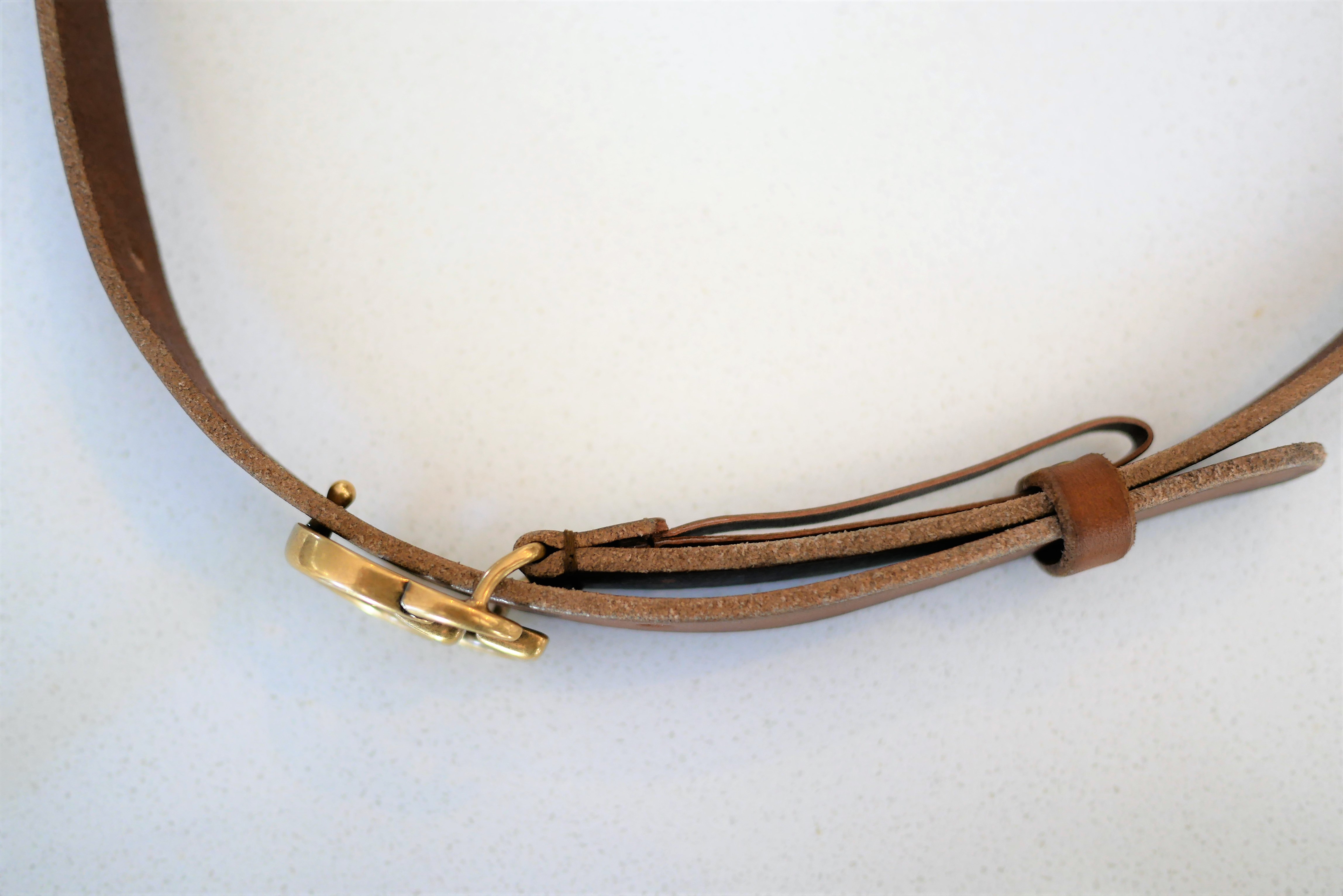 I opted for the skinny belt which is .5″ wide (or 2 cm) in the faded, unfinished leather. The double G pictured above is the “new” Marmont buckle design. Head designer Alessandro Michele took his inspiration from the Marmont buckle that Gucci used in the 70’s and he relaunched it for his contemporary collection. This explains the vintage feel of the design and I wanted to enhance this by choosing the faded brown leather.