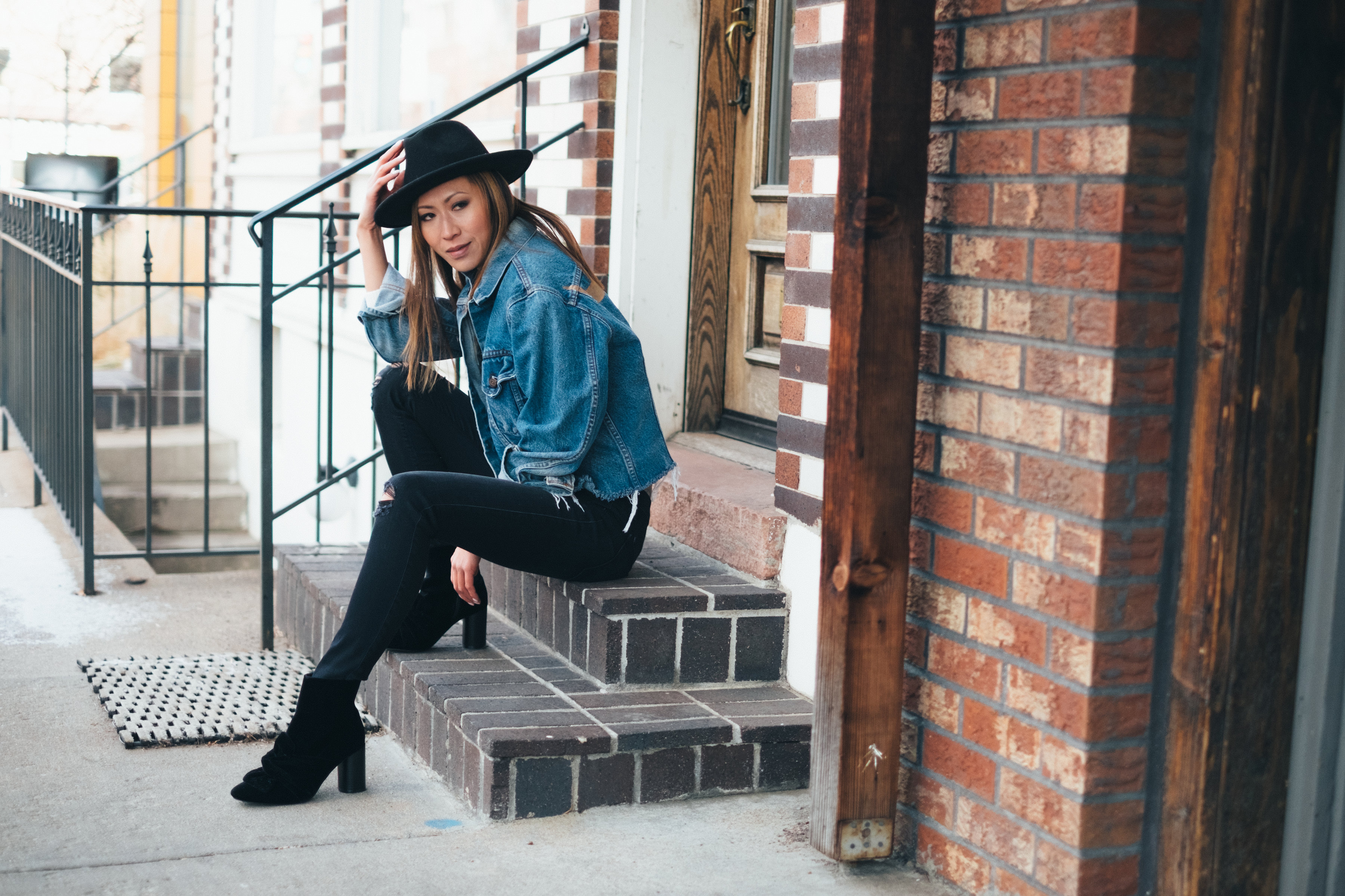 The crop denim jacket with frayed hems: this gem will give you instant cool girl status with a raw hem that looks like you just busted a big pair of scissors out 2 minutes ago. It also carries this carefree, I-don’t-give-a-crap attitude as in: the jacket was too long, so I just cut it. done.