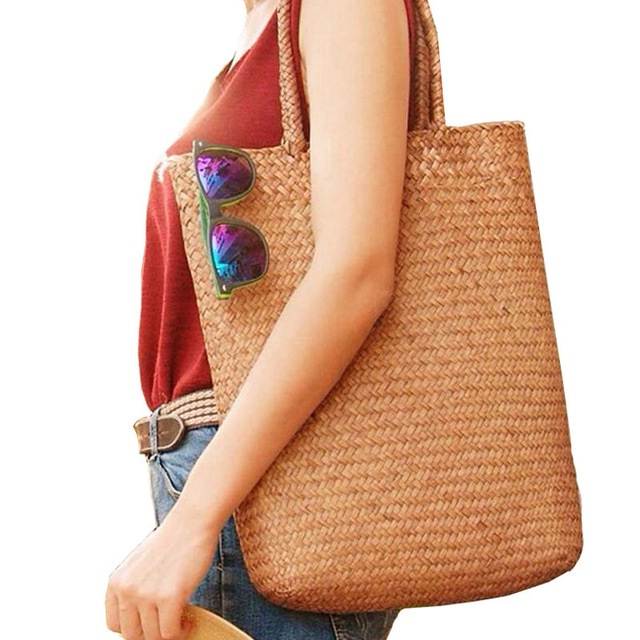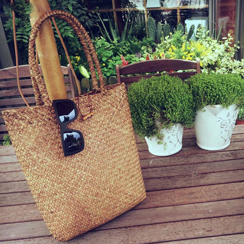 Woven straw tote bag, lined on the inside. This simple design is casual and timeless. This bag can be used as a shopping bag or a casual tote. There are two handles on top long enough to carry the bag over your shoulder.